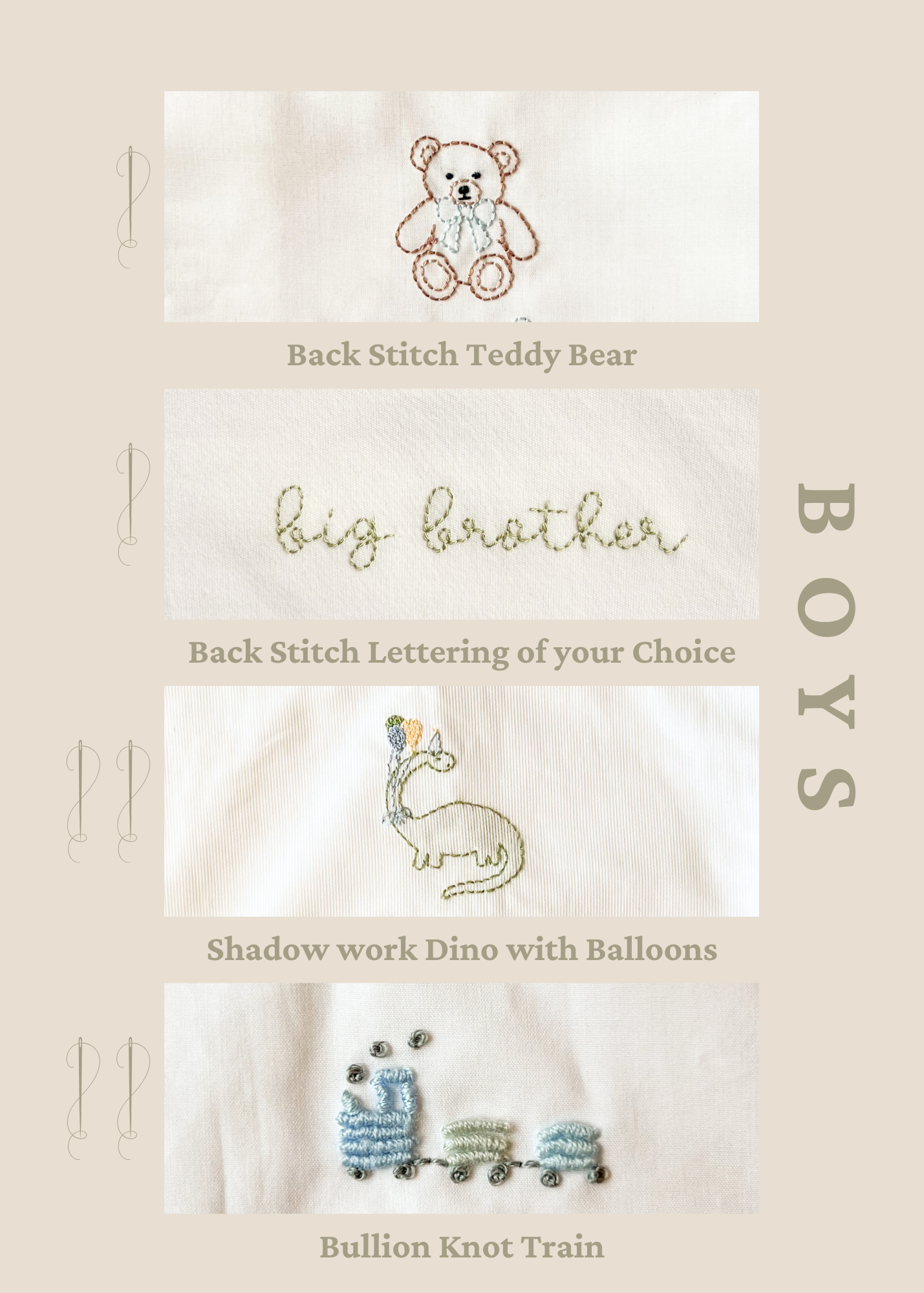 Shop Categories: Select a Category stitched by you kits collaborations stitched by kara custom embroidery digital downloads add-ons stitched by you kits | collaborations | stitched by kara custom embroidery | digital downloads | add-ons | SUMMER PLAY COLLECTION: Girl's Removable Bib Bubble Kit $65.00 SUMMER PLAY COLLECTION Boy's Bubble Kit $65.00 SUMMER PLAY COLLECTION: Girl's A-line Dress Kit $60.00 SUMMER PLAY COLLECTION: Girl's Bonnet Kit $45.00 SUMMER PLAY COLLECTION Girl’s Side Tie Bloomer Set Kit $60.00 SUMMER PLAY COLLECTION Boy’s Diaper Set Kit $60.00 Boy's White with Blue Piping Bubbe Kit Sale Price: $45.00 Original Price: $55.00 Sale Girl's White with Pink Piping Dress Kit Sale Price: $45.00 Original Price: $55.00 Sale Diaper Set Kit Sale Price: $45.00 Original Price: $50.00 Sale Custom Spot Stitched by Kara $40.00 Sold Out Christmas Rocking Horse Peter Pan Collar Onesie $45.00 Boy's Pumpkin Peter Pan Collar Onesie $45.00 Beaded Bow Kit $28.00 Girl's Peter Pan Dress Kit Sale Price: $40.00 Original Price: $50.00 Sale Boy's Peter Pan and Short Set Kit Sale Price: $45.00 Original Price: $55.00 Sale Newborn Gown Kit Sale Price: $45.00 Original Price: $50.00 Sold Out Sash Kit Sale Price: $30.00 Original Price: $35.00 Sale French Knot Farm Animals $15.00 Shadow Work Bow & Butterflies $15.00 Shadow Work Airplane Video Tutorials $15.00 Bullion Knot Bunny & Carrots Video Tutorials $15.00 French Knot Lamb & Bullion Knot Chicks Video Tutorials $15.00 Hoop $4.00 Embroidery Scissors $10.00